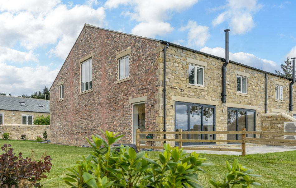 Buttercup Barn features a reclaimed brick front exterior and a honeyed sandstone rear exterior.